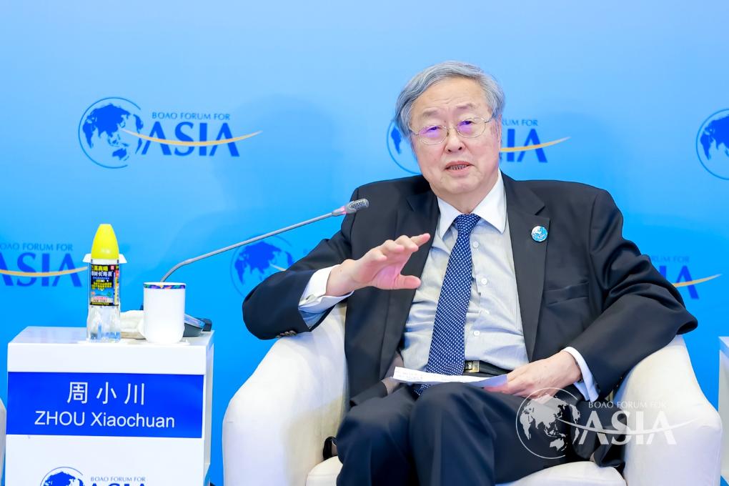 ボアオ・アジアフォーラム年次総会の分科会で発言する中国人民銀行元総裁の周小川氏。(ボアオ=新華社配信)