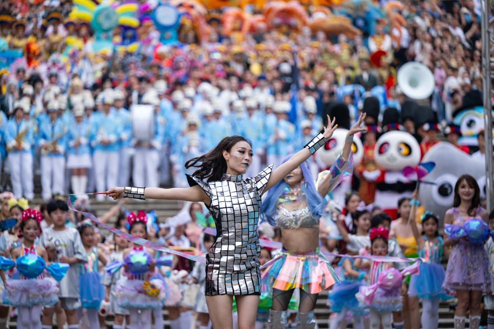 【新華社マカオ3月30日】中国マカオ特別行政区で29日、地元政府文化局などの共催による「2026マカオ国際パレード」が行われた。国内外のパフォーマンスチームが街じゅうで歌や踊りを披露し、多様な文化が融合するマカオの魅力を存分に表現した。