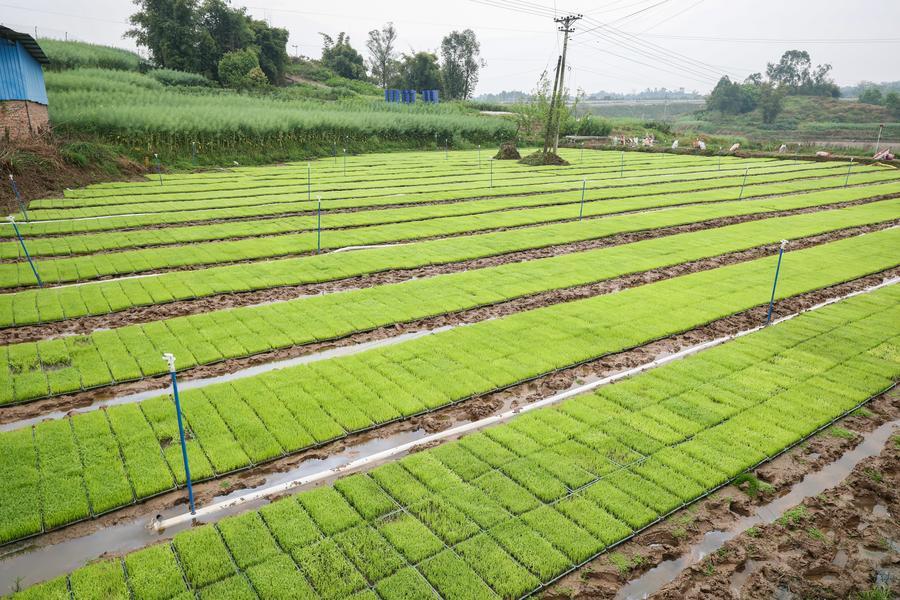 27日、重慶市永川区の二郎壩村にある育苗拠点。(重慶=新華社記者/黄偉)