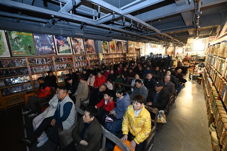 25日、張賽祥さんの映画博物館で映画を鑑賞する来場者。(樟樹=新華社配信/周亮)