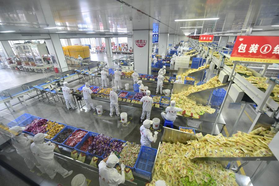 タニシビーフンメーカー、広西螺霸王食品科技の工場で製品を包装する従業員ら。(2025年9月9日撮影、柳州=新華社記者/黄孝邦)