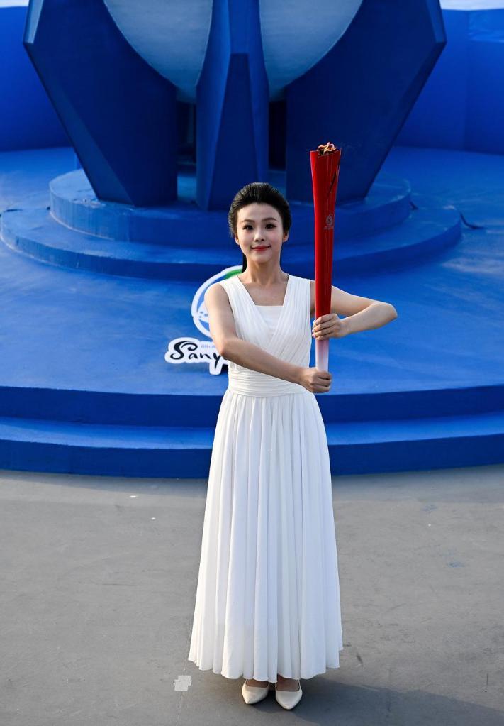 30日、採火式で聖火のトーチを掲げる式典関係者。(三亜=新華社記者/蒲暁旭)