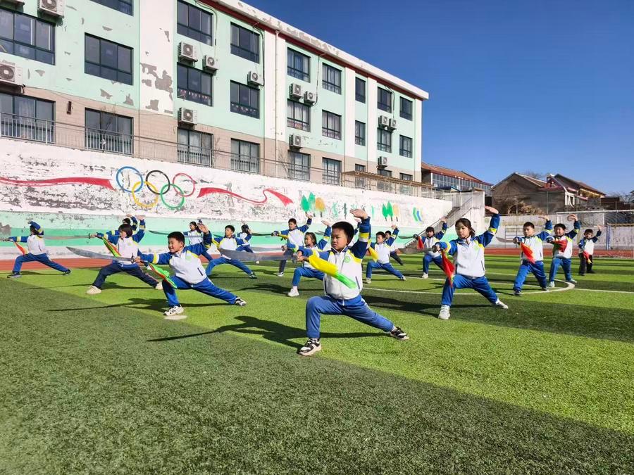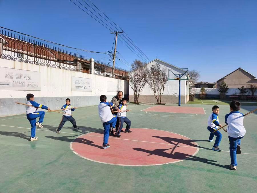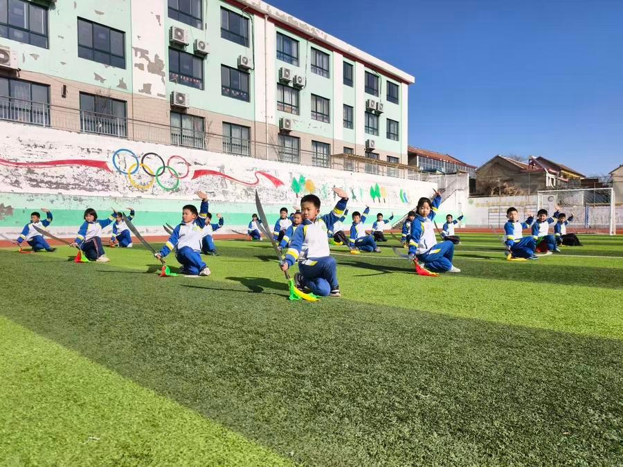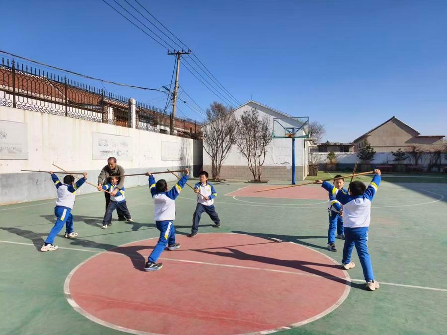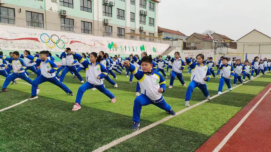 【新華社淄博4月1日】中国山東省淄博(しはく)市博山区の朱家荘小学校では長い休み時間になると、集団で伝統武術「九宮八卦斬穴拳」を練習する児童たちで運動場が活気づく。