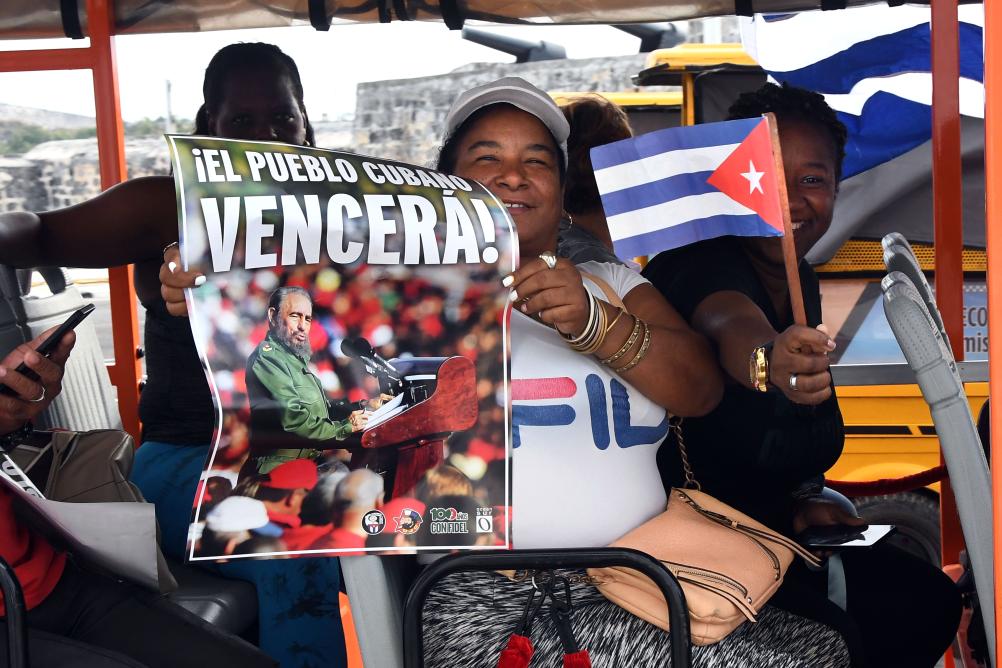 2日、キューバ・ハバナのマレコン通りに集まり、帝国主義への反対とキューバ革命の防衛を訴える人々。(ハバナ=新華社配信)