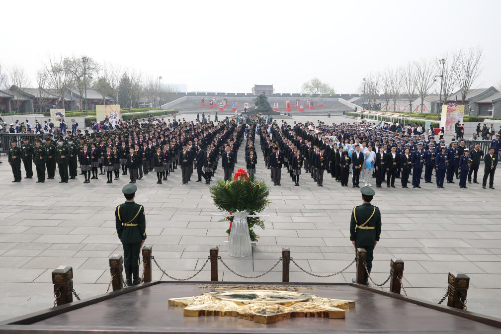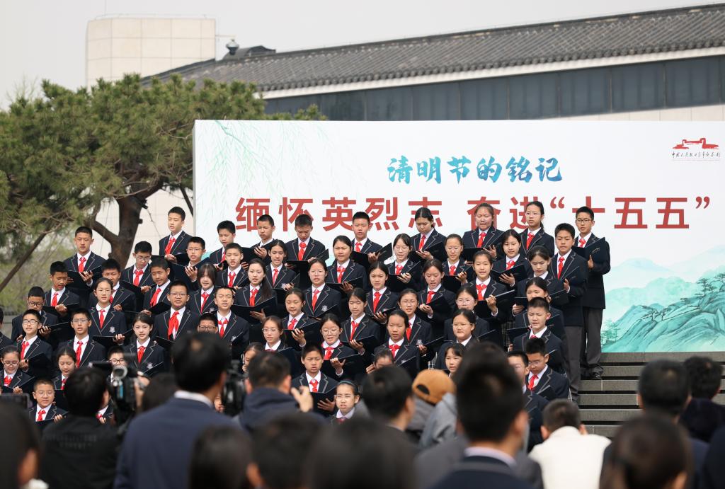 3日、中国人民抗日戦争紀念館で行われた、清明節に合わせた教育活動の始動式。(北京=新華社記者/張晨霖)