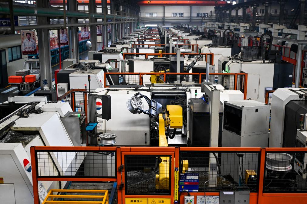 1日、自動車部品メーカー、包頭盛泰汽車零部件製造のアルミ合金ホイール生産ライン。 (包頭=新華社記者/李志鵬)