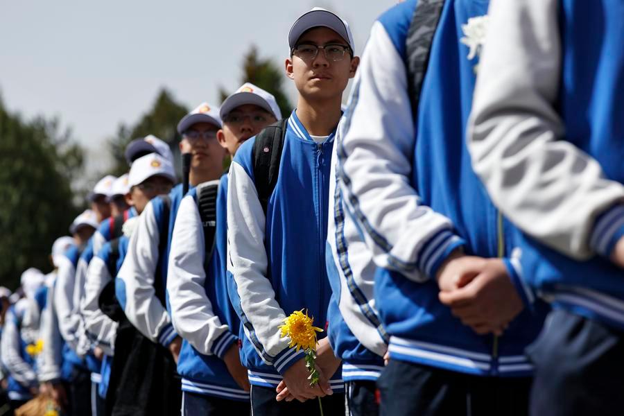 【新華社銀川4月4日】中国寧夏回族自治区固原市で3日、中高生たちによる追悼ウオーキングと追悼式が行われた。市内の第二中学や弘文中学などの教師、生徒、各界の関係者ら3千人余りは早朝5時に学校を出発、烈士396人を祭る彭陽県の任山河烈士陵園まで往復約54キロを徒歩で移動した。