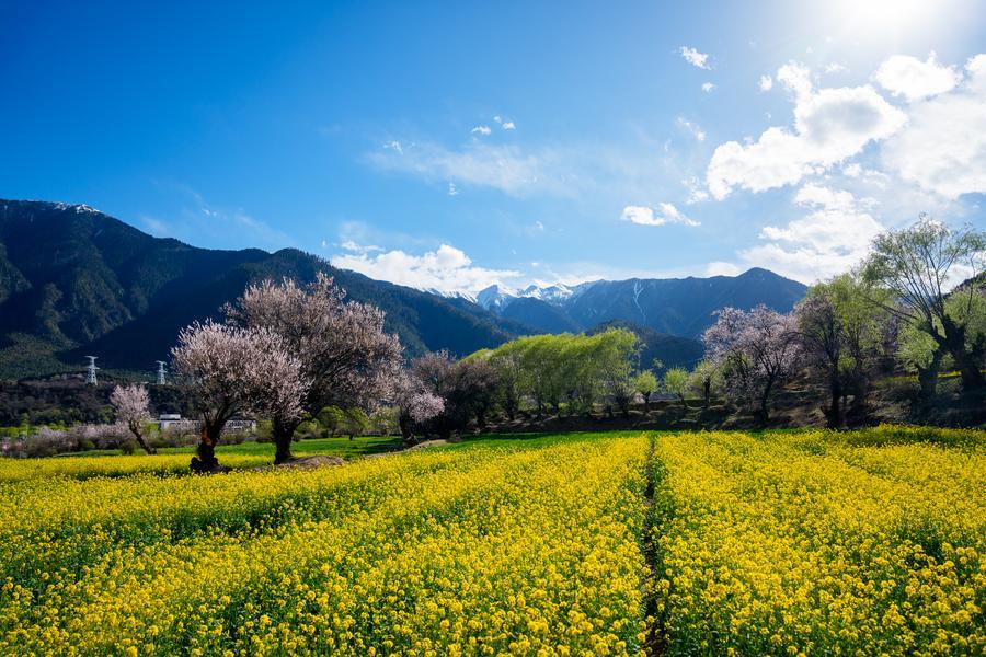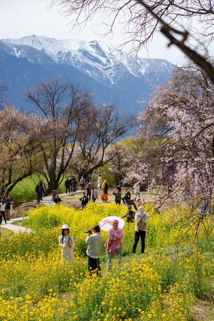 【新華社ニンティ4月5日】中国西蔵自治区林芝(ニンティ)市に春が訪れ、尼洋(ニャン)川とヤルツァンポ川のほとりに数十キロにわたり野生の桃の花が咲き、そびえ立つ雪山とのコントラストが多くの観光客を引き付けている。同市は高原地帯にありながら比較的温暖なことで知られている。