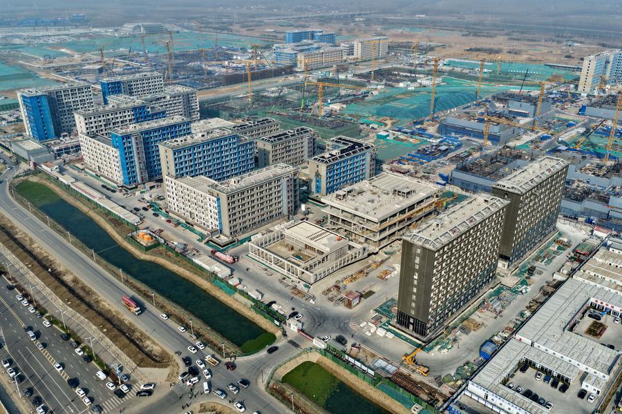 雄安新区の先行開発区。(3月15日、ドローンから、雄安=新華社記者/楊世尭)