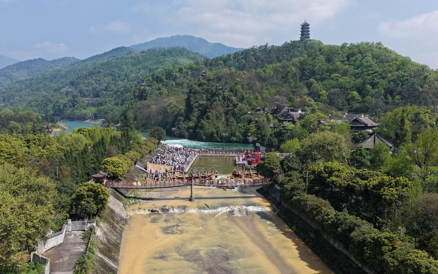 【新華社成都4月6日】中国四川省都江堰(とこうえん)市の都江堰風景区で3日、「2026年都江堰放水節」が盛大に開幕した。古代の水利施設「都江堰」で2千年の歴史を持つ年次修繕後の開堰(かいせき)儀式は、今年同省で初めて小中高校に導入された春休み(主に1~3日)とタイミングが重なった。