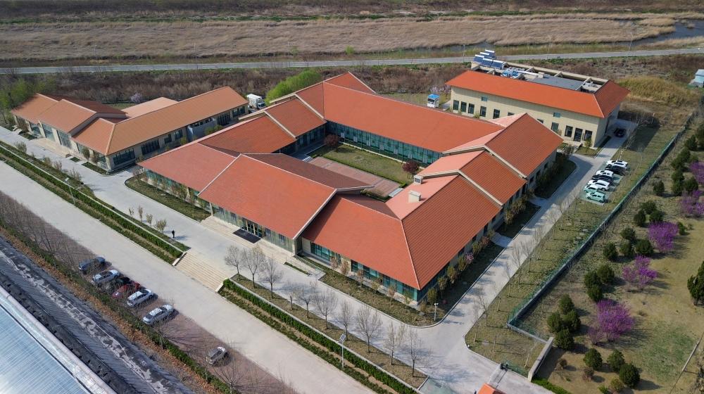 1日、寿光野菜遺伝資源庫。(ドローンから、寿光=新華社記者/徐速絵)