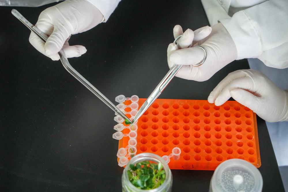 1日、寿光野菜遺伝資源庫の組織培養室で作業する職員。(寿光=新華社記者/徐速絵)