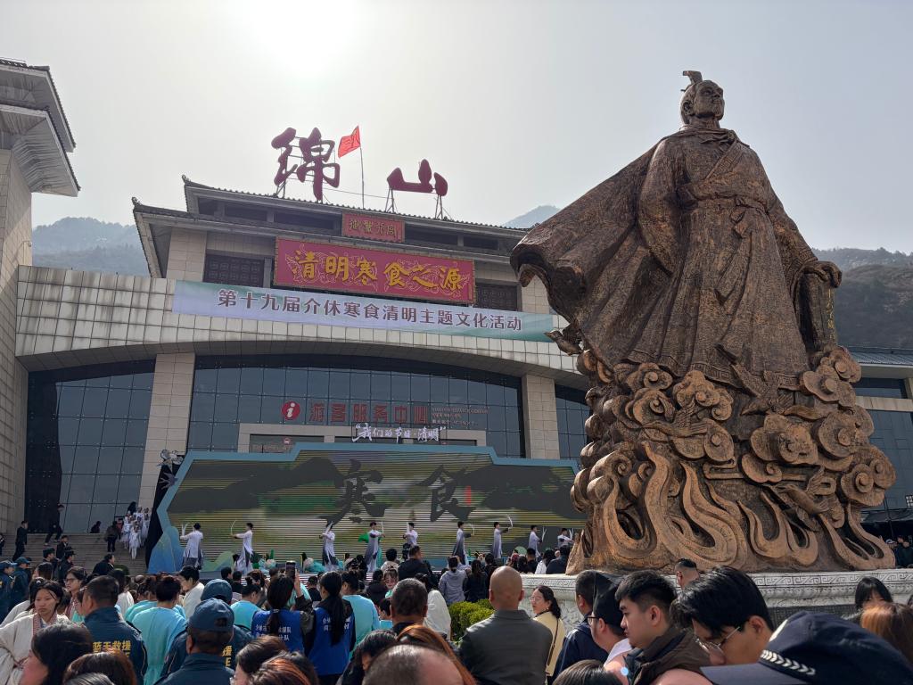 【新華社太原4月8日】中国山西省介休市の綿山で1~30日、伝統的な祝日の寒食節と清明節を祝う催し「第19回寒食清明文化祭」が開かれている。中国各地のほか、欧米や日本、韓国などの国・地域からも観光客が訪れ、古くからの伝統行事を楽しんでいる。