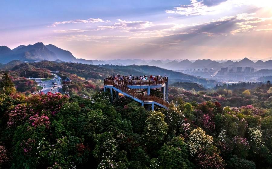 3月26日、百里杜鵑管理区の金坡風景区で花見を楽しむ観光客。(畢節=新華社配信/陳曦)