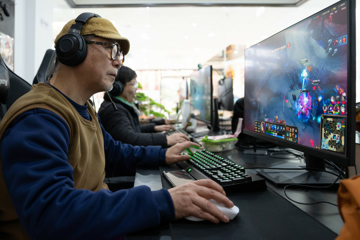 四川省成都市青羊区にあるシニア向けサービス施設、悦己・快楽生活研習社のeスポーツルームでは、陳良才(ちん・りょうさい)さん(63)がしっかりとした声でチームメイトに指示を出していた。