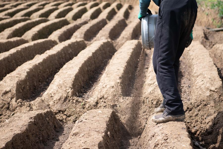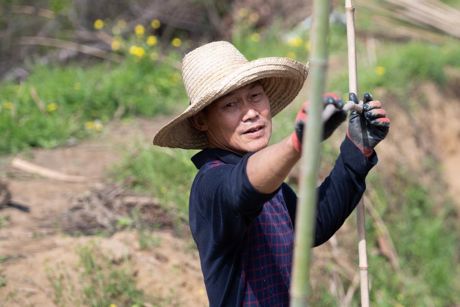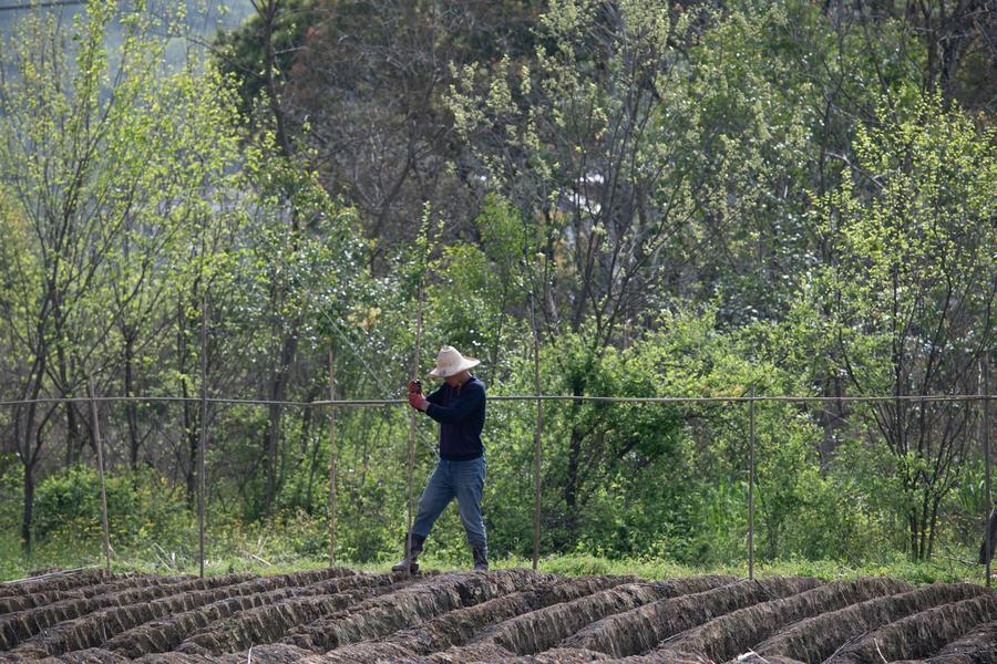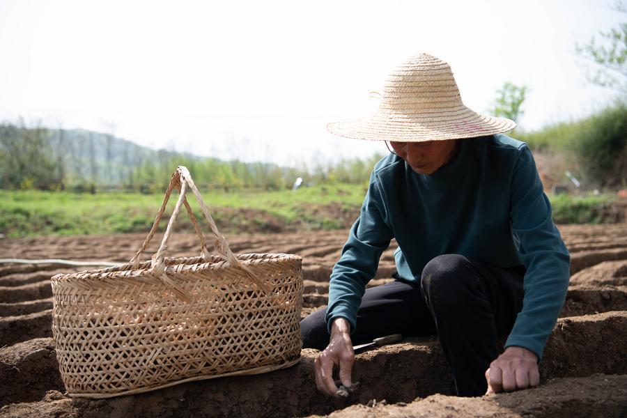 【新華社銅陵4月8日】中国安徽省銅陵市の大通鎮や天門鎮で、特産の白ショウガの植え付けや施肥、棚の設置作業が進み、春の農作業が本格化している。
