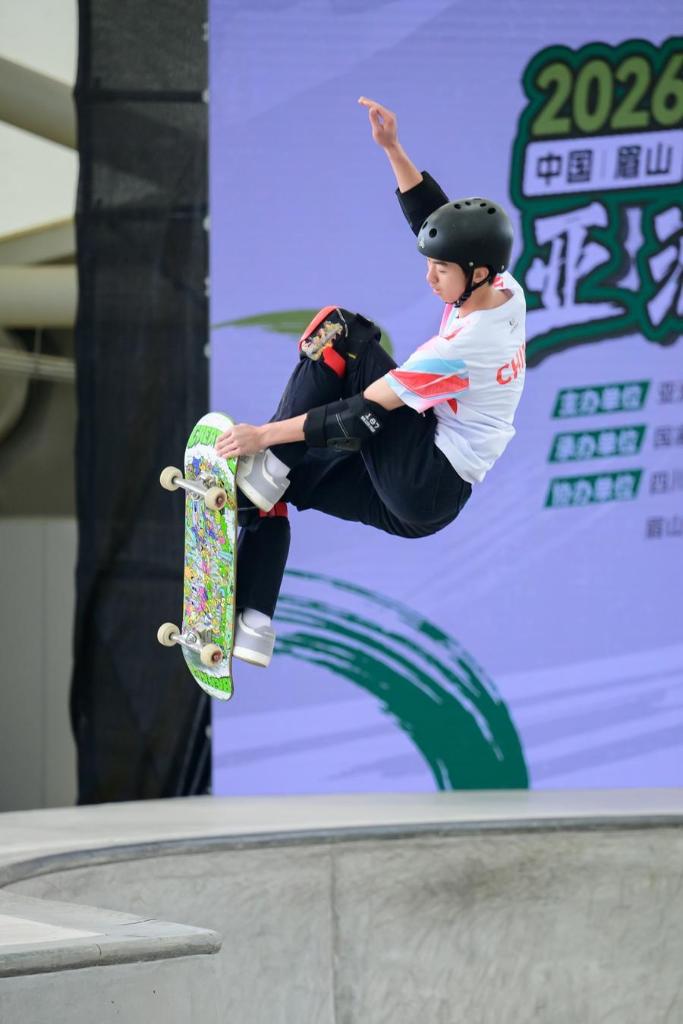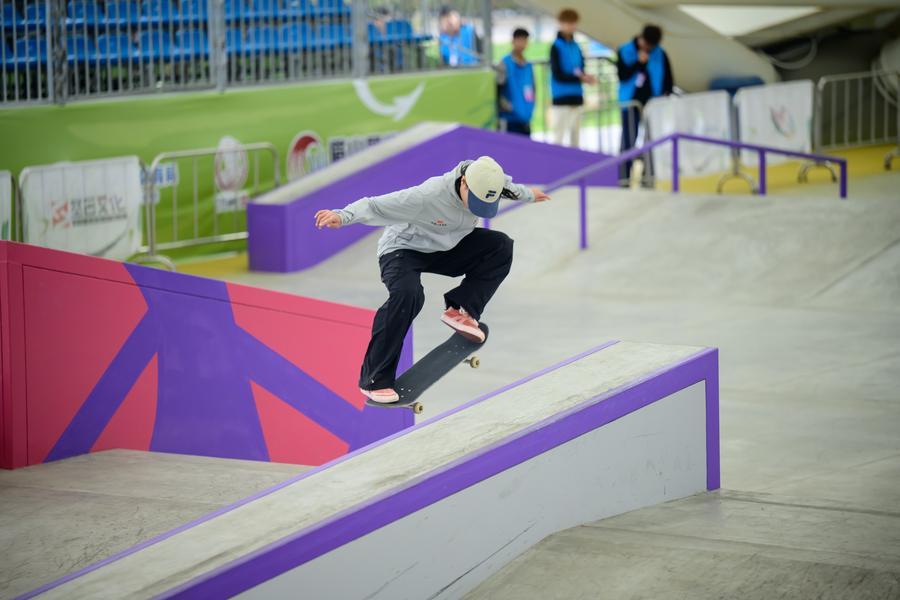 8日、2026年スケートボードアジア選手権大会の試合の様子。(眉山=新華社配信)