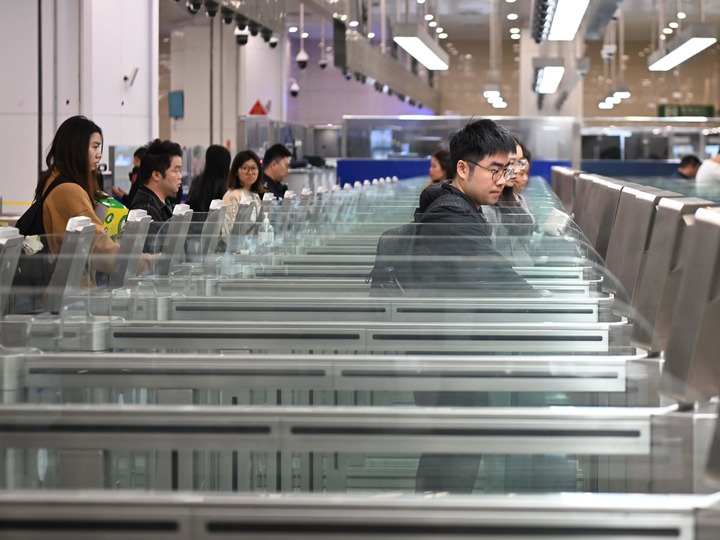 横琴口岸のセルフ審査通関通路を通る旅客。(2024年11月25日撮影、珠海=新華社記者/鄧華)