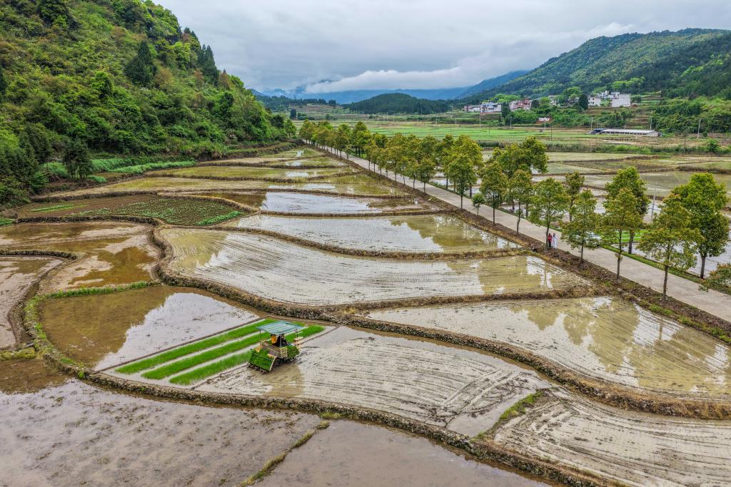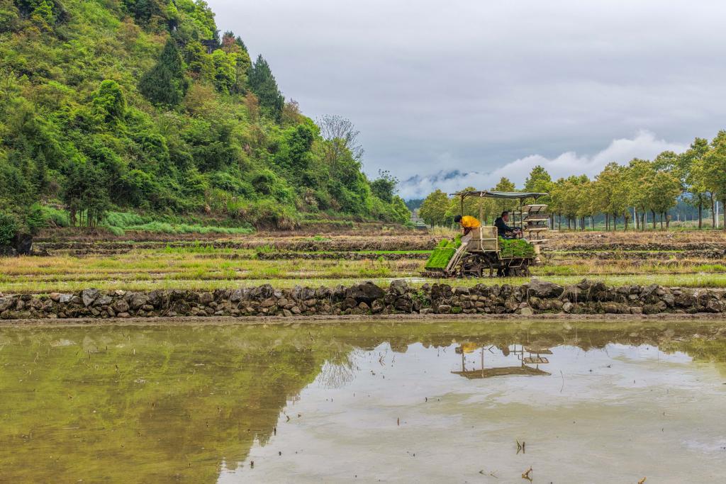 7日、浙江省東陽市で田植えに備える農家の人。(東陽=新華社配信/包康軒)