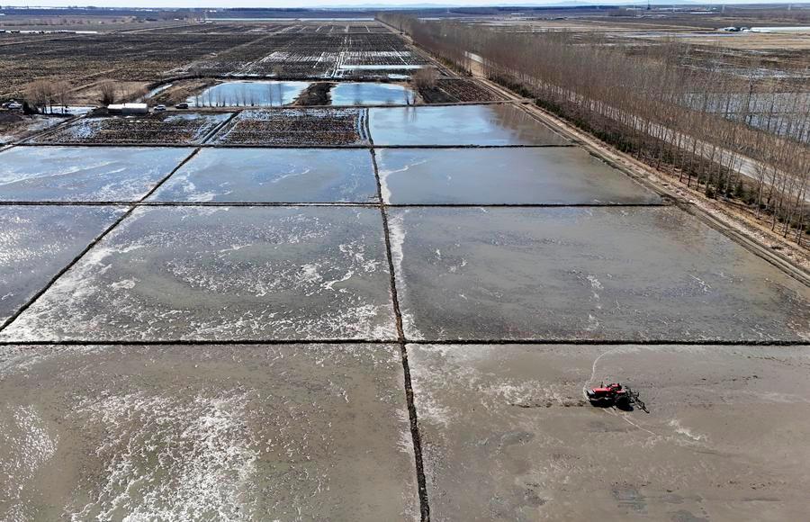【新華社ハルビン4月11日】中国の主要食糧生産地、黒竜江省の各開墾地区では、気温の上昇に伴い、春の稲作作業が次々と始まった。農地には活気あふれた光景が広がっている。