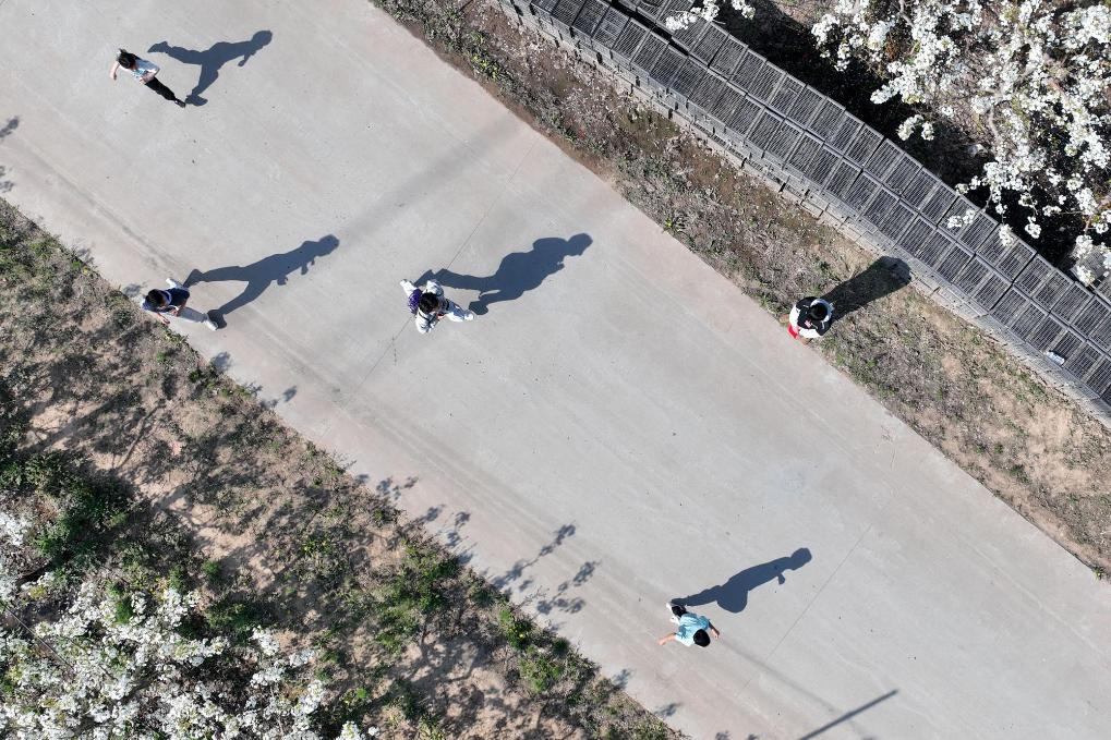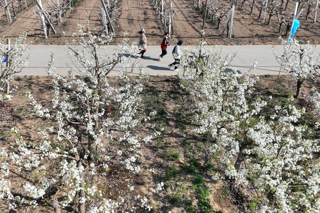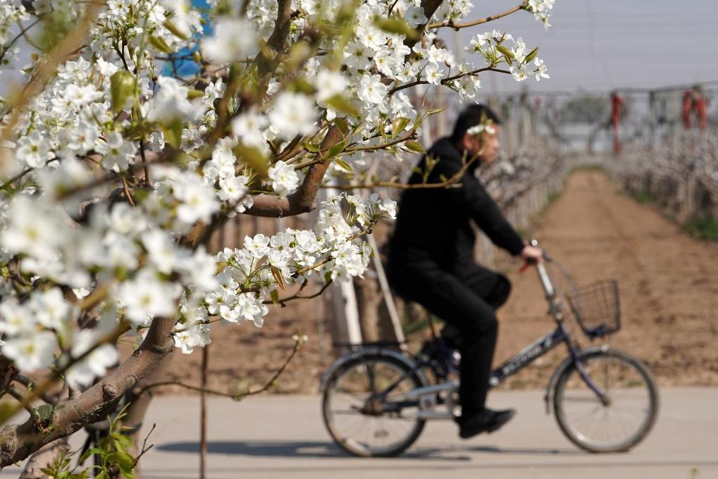 【新華社邢台4月11日】中国河北省邢台市威県では気温の上昇に伴い、一面に広がるナシの花が次々と開花し、多くの観光客が花見や行楽に訪れている。