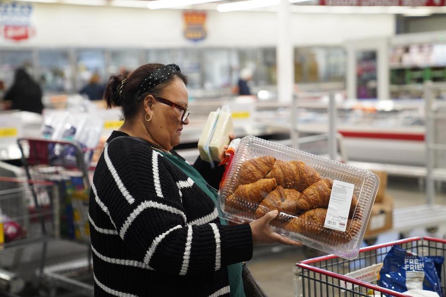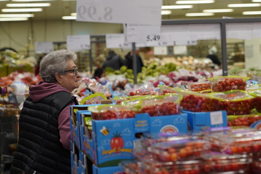 10日、ニューヨークのスーパーで食品を選ぶ女性。(ニューヨーク=新華社記者/張鳳国)