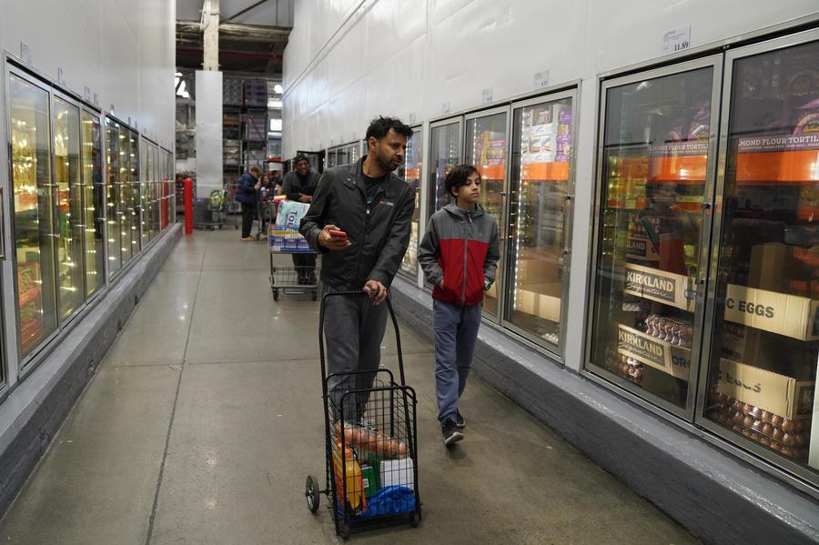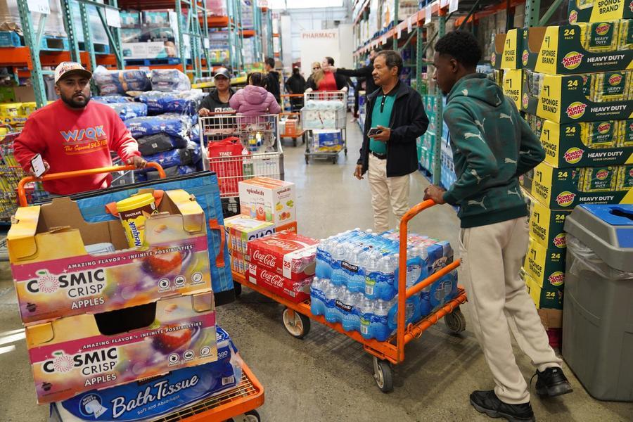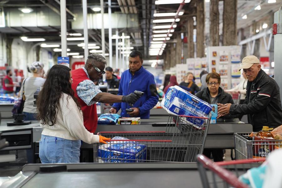 10日、ニューヨークのスーパーで生活用品を購入する客。(ニューヨーク=新華社記者/張鳳国)