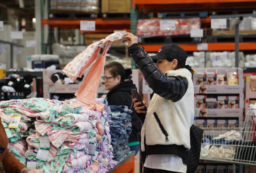 10日、ニューヨークのスーパーで子ども服を選ぶ客。(ニューヨーク=新華社記者/張鳳国)