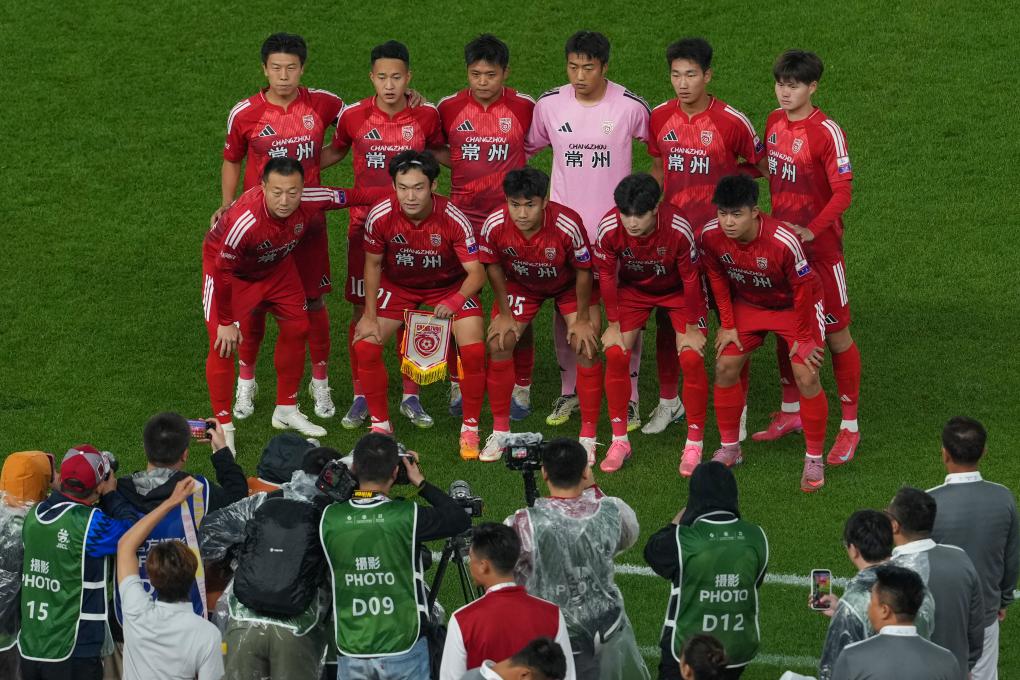 11日、試合前の記念撮影に臨む常州チーム。(常州=新華社記者/李博)