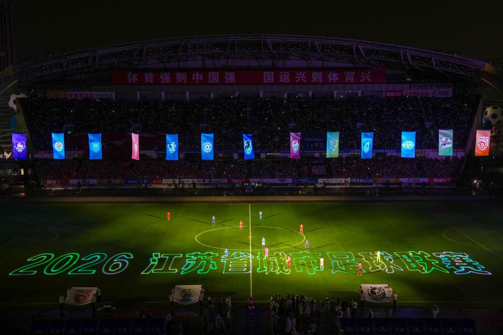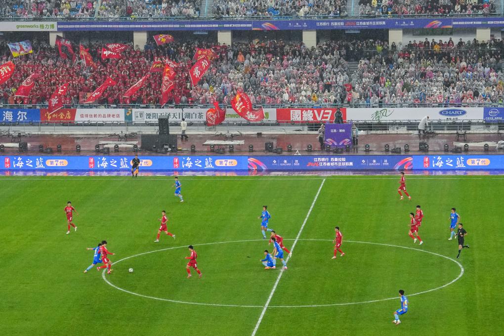 【新華社常州4月12日】中国江蘇省常州市の常州オリンピックスポーツセンタースタジアムで11日、同省アマチュアサッカーリーグ「蘇超」の開幕戦が行われ、常州チームと南通チームが対戦した。