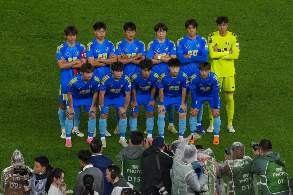 11日、試合前の記念撮影に臨む両チームの選手。(常州=新華社記者/李博)