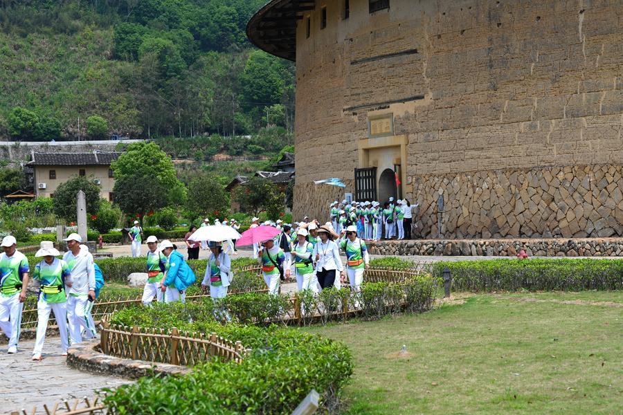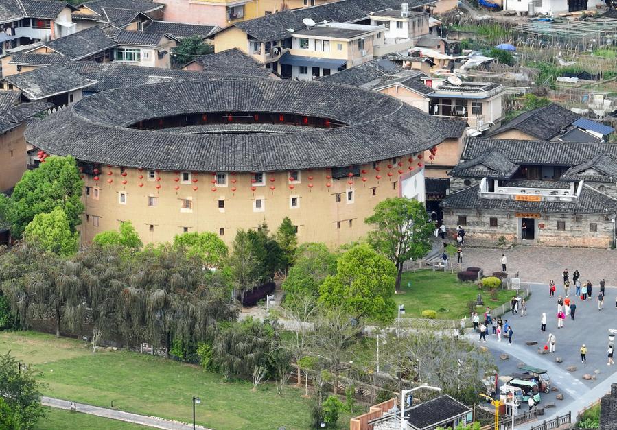 【新華社福州4月14日】中国福建省の土楼は竜岩市永定区や漳州市南靖、華安両県などに点在する大規模な版築造りの民家で、2008年に世界遺産に登録された。地元では近年、「福建土楼」のブランド化に取り組み、建物の保護と活用、観光との融合を継続的に推進。環境と文化、観光の質の高い発展を実現している。