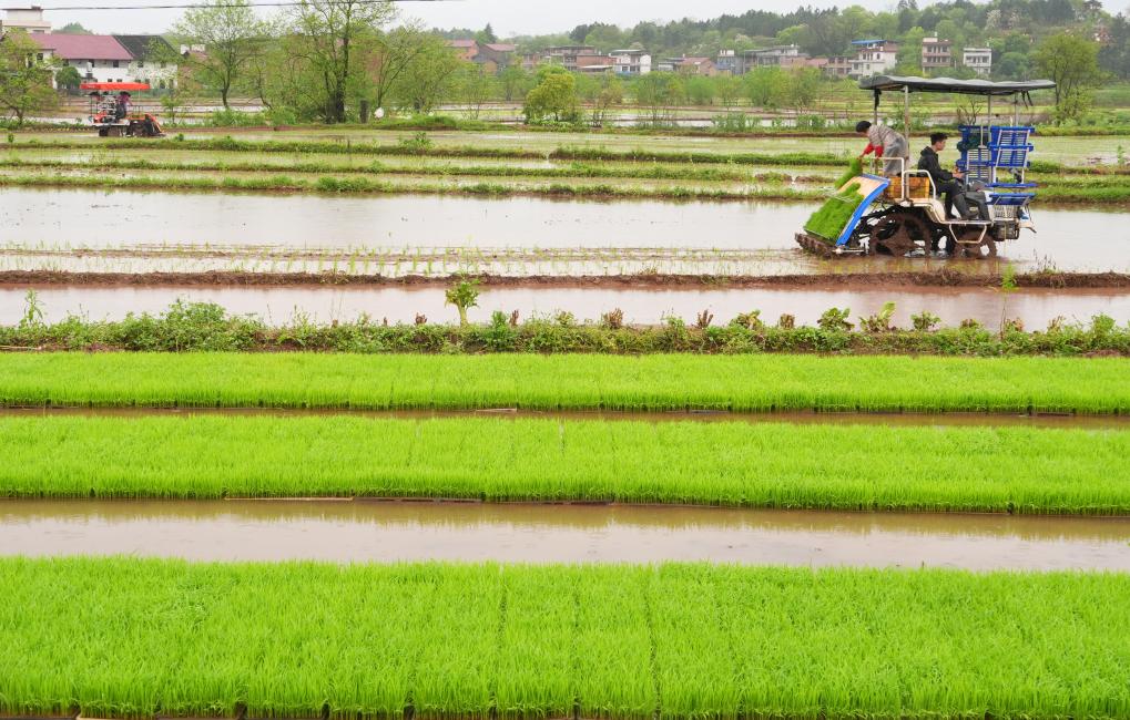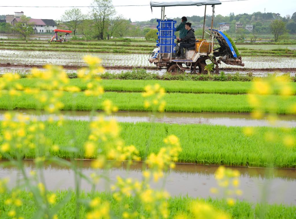 11日、湖南省衡陽市で田植え機を運転する地元住民。(衡陽=新華社配信/曹正平)