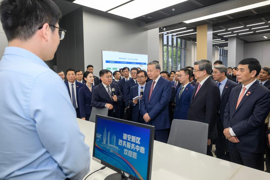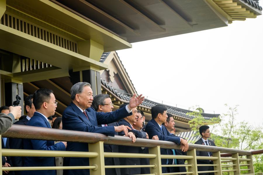 【新華社北京4月14日】ベトナムのトー・ラム共産党書記長・国家主席は14日午前、中国の国賓として4日間の訪問を開始した。北京到着後、直ちに高速鉄道に乗り、河北省の雄安新区を視察した。