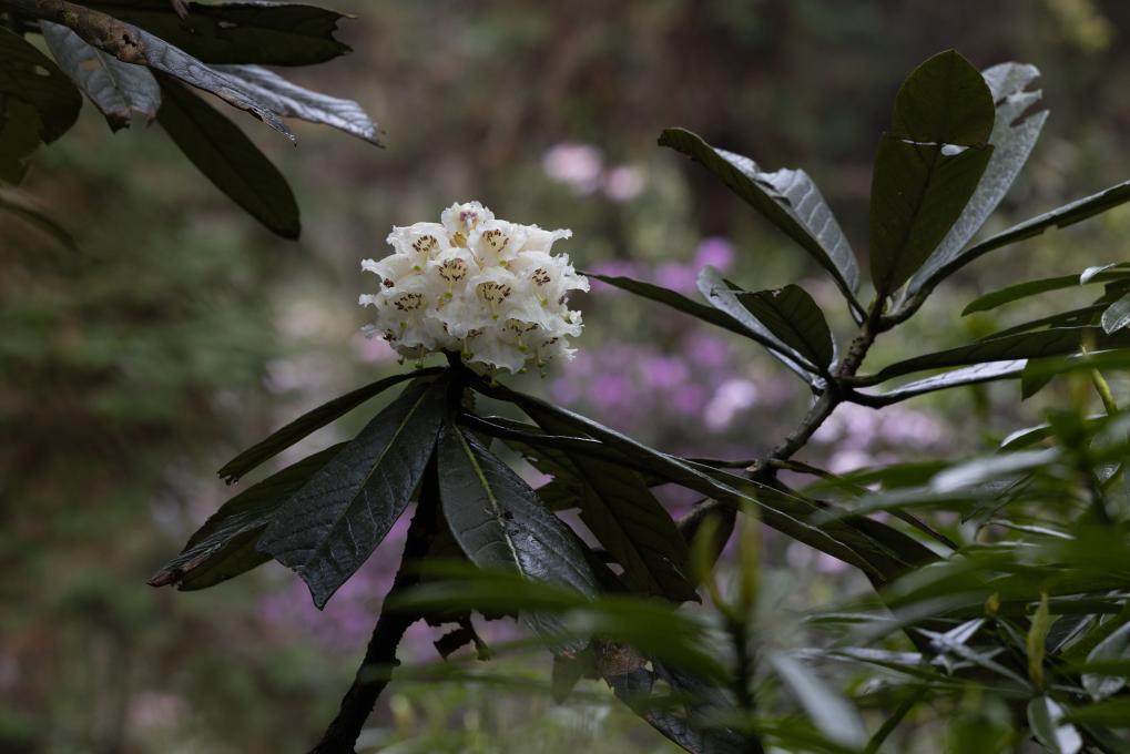 8日、華西亜高山植物園で栽培されている凸尖シャクナゲ。(成都=新華社記者/江宏景)