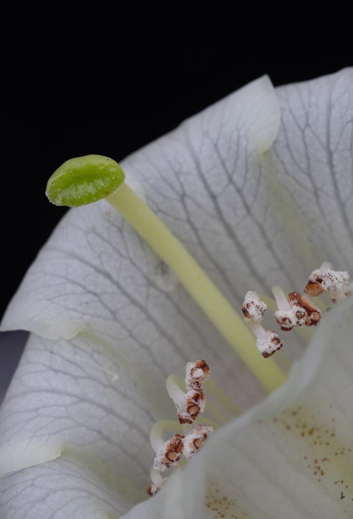 8日、華西亜高山植物園でマクロレンズが捉えた凸尖シャクナゲの花芯。(成都=新華社記者/江宏景)