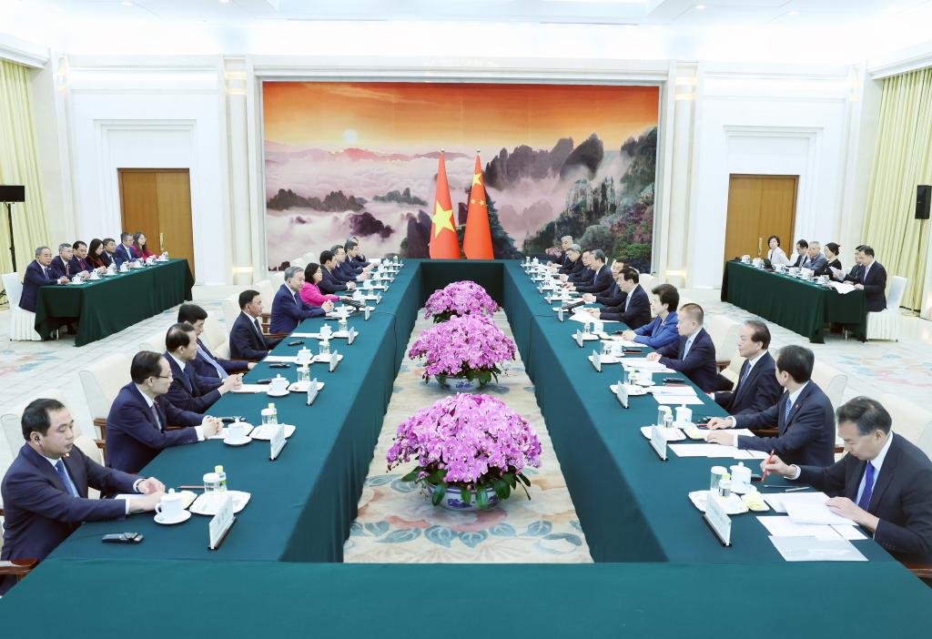 【新華社北京4月15日】中国の王滬寧(おう・こねい)共産党中央政治局常務委員・中国人民政治協商会議(政協)全国委員会主席は14日、ベトナムのトー・ラム共産党書記長・国家主席と北京で会談した。