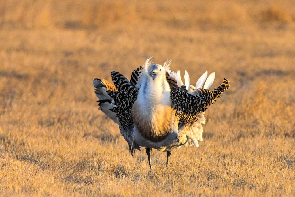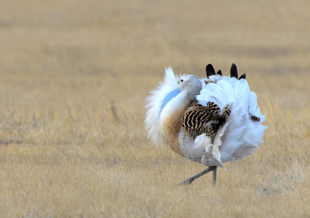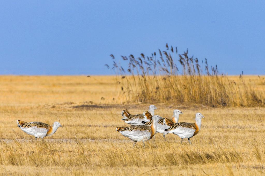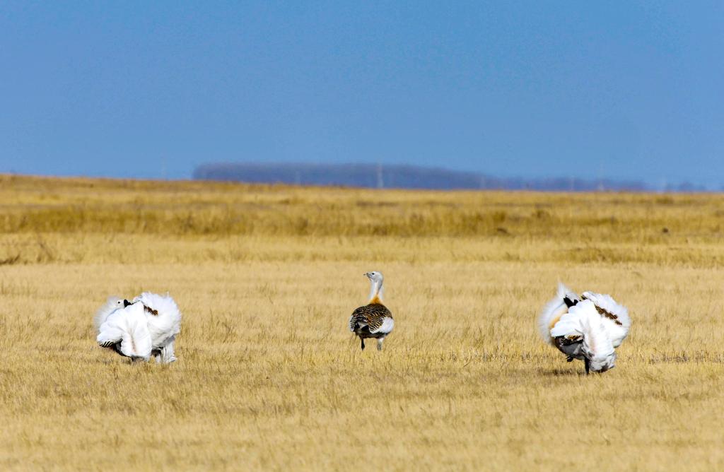 13日、黒竜江省大慶市林甸県の草原で撮影したノガン。(林甸=新華社配信/王勇剛)