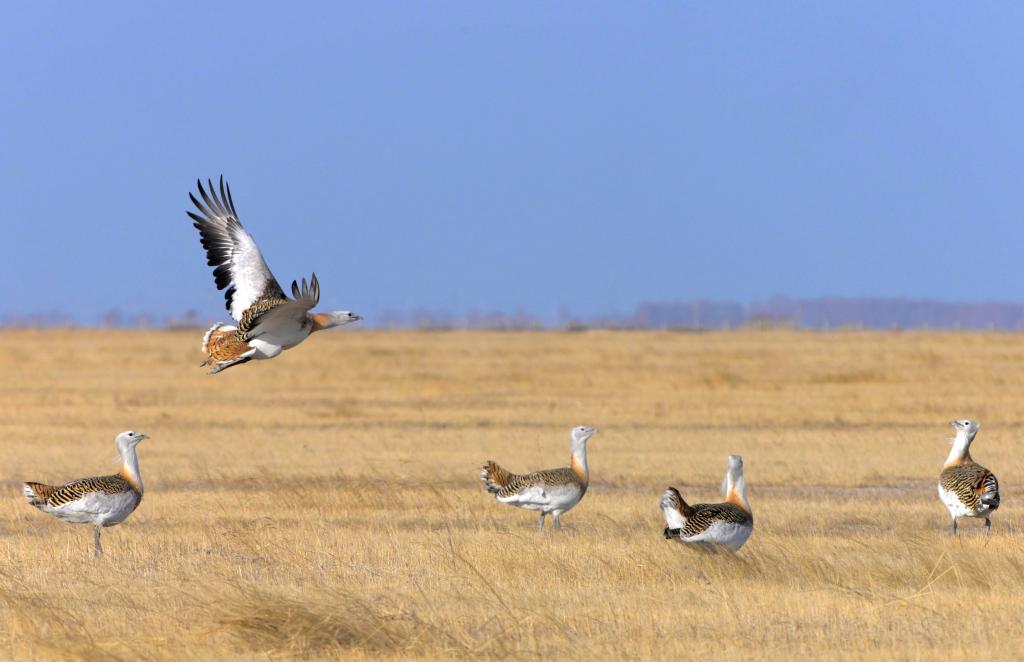 【新華社ハルビン4月15日】中国黒竜江省大慶市林甸(りんてん)県の草原でこのほど、国家1級保護動物のノガンが確認された。ノガン科に属する大型の地上性鳥類で、広大な平原や乾燥した草原、サバンナ、半砂漠地帯などに生息。国際自然保護連合(IUCN)のレッドリストと「中国絶滅危惧動物レッドデータブック」に掲載されている。