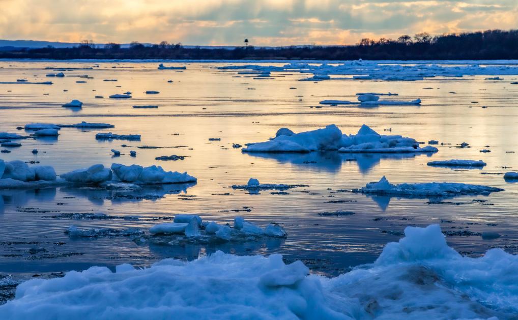 14日、黒竜江省伊春市嘉蔭県を流れる黒竜江で観測された流氷。(ハルビン=新華社配信/李紹軍)