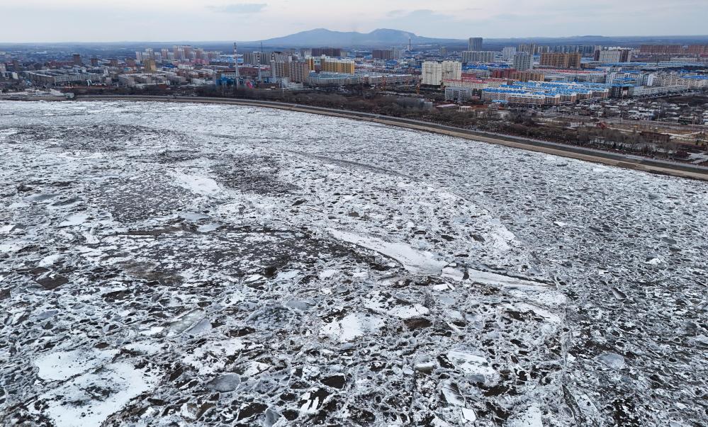 【新華社ハルビン4月15日】中国黒竜江省では春の訪れとともに気温が上昇し、数カ月間氷に閉ざされていた黒竜江や松花江など主要河川の一部区間で解氷が始まった。氷塊が川を流れ下る北国独特の景観が広がっている。