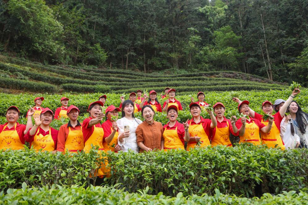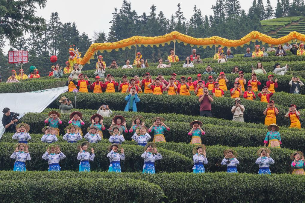 15日、木壢生態茶園で行われた茶摘み開始の儀式。(武夷山=新華社配信/邱汝泉)