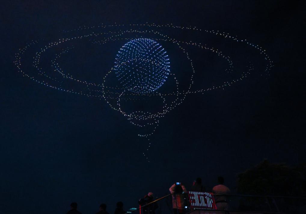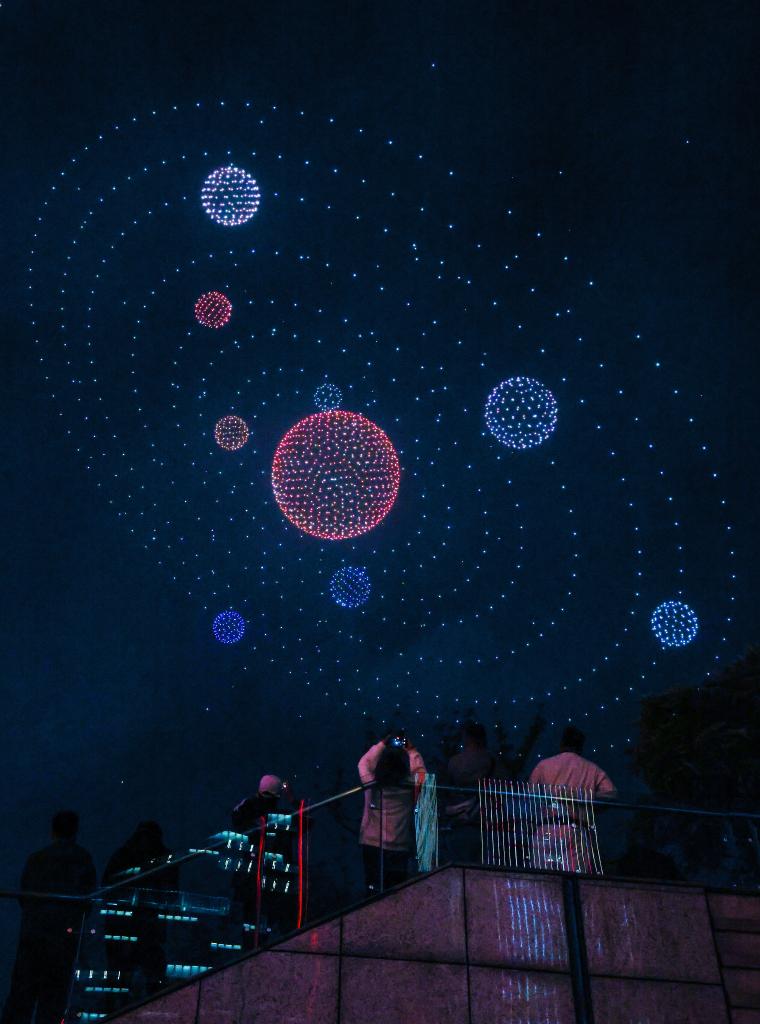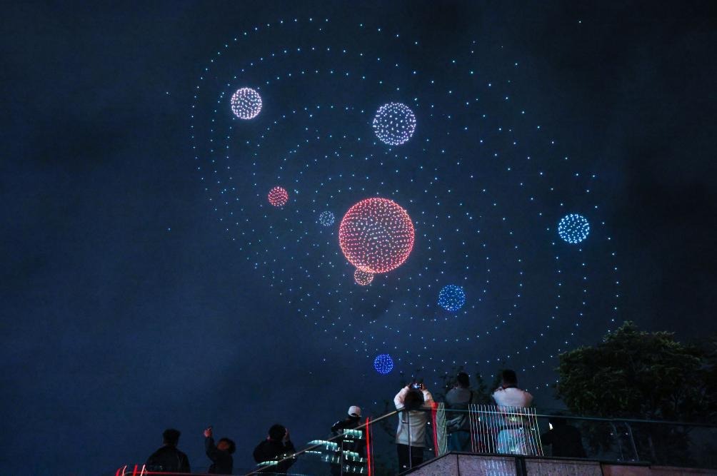 【新華社貴陽4月16日】中国貴州省貴陽市観山湖区で14日夜、ドローンショーが開催された。数千機が夜空を彩り、多くの市民や観光客の目を楽しませた。