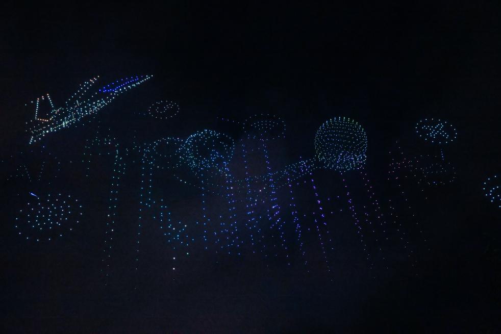 14日夜、貴陽市観山湖区で開催されたドローンショーの様子。(貴陽=新華社記者/楊文斌)