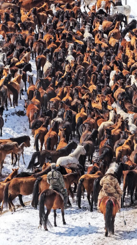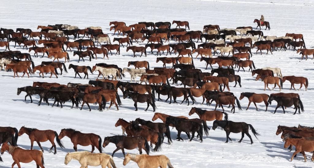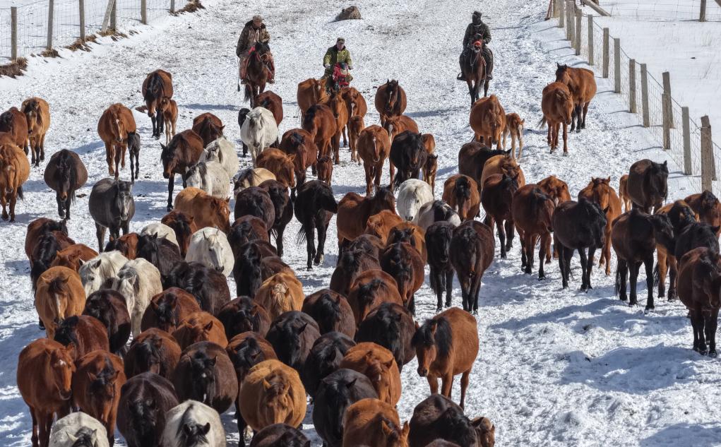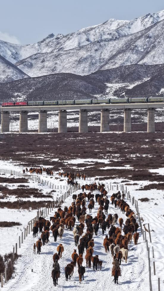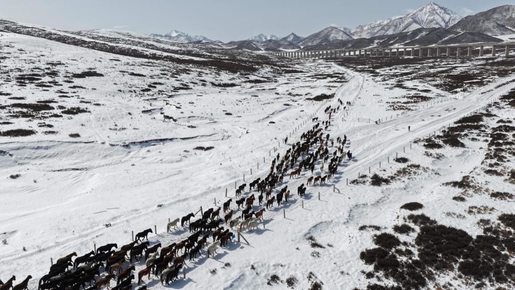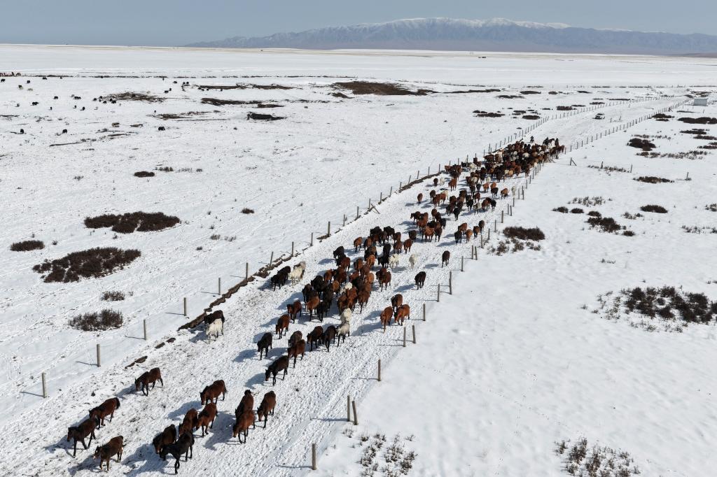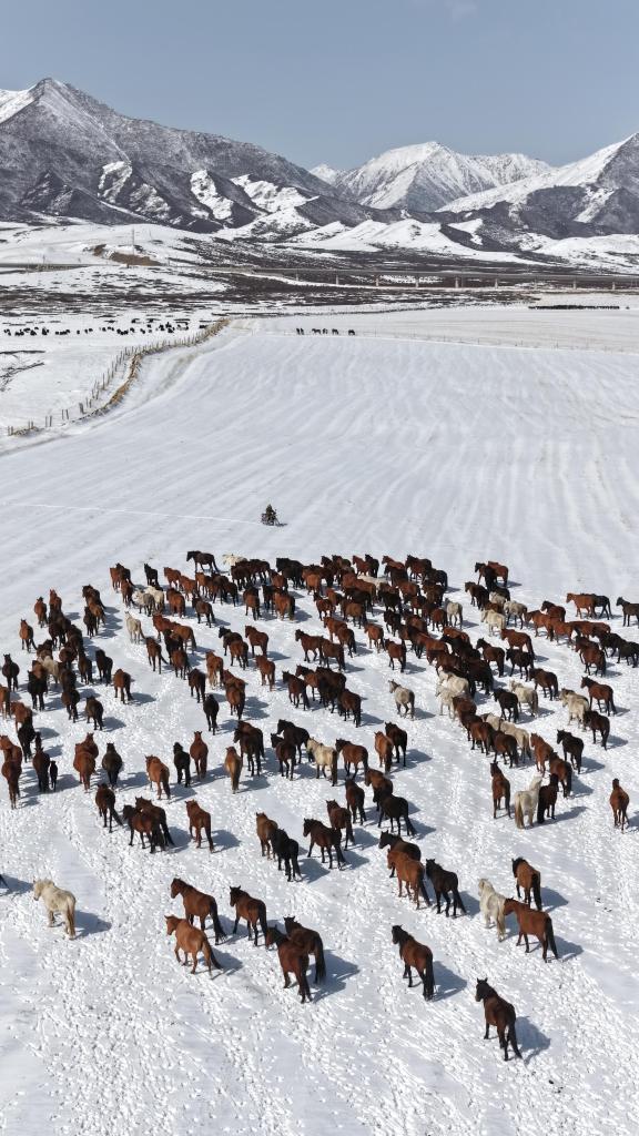 【新華社張掖4月16日】中国甘粛省の山丹馬場で春の耕作が本格化している。牧畜民らは農作業が円滑に進むよう、馬の群れを畑から引き上げ、冬の間に養生していた草原へと数回に分けて誘導した。