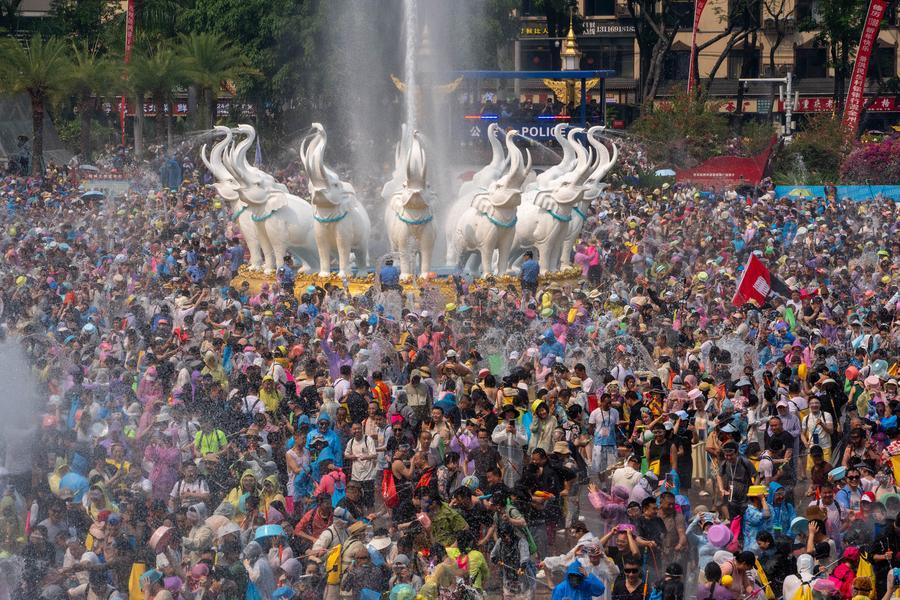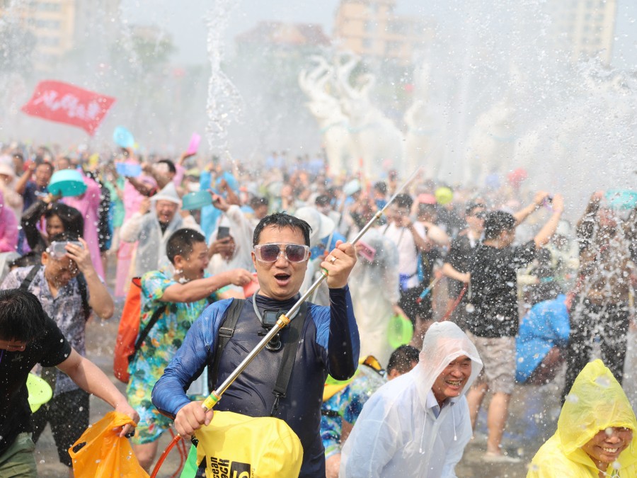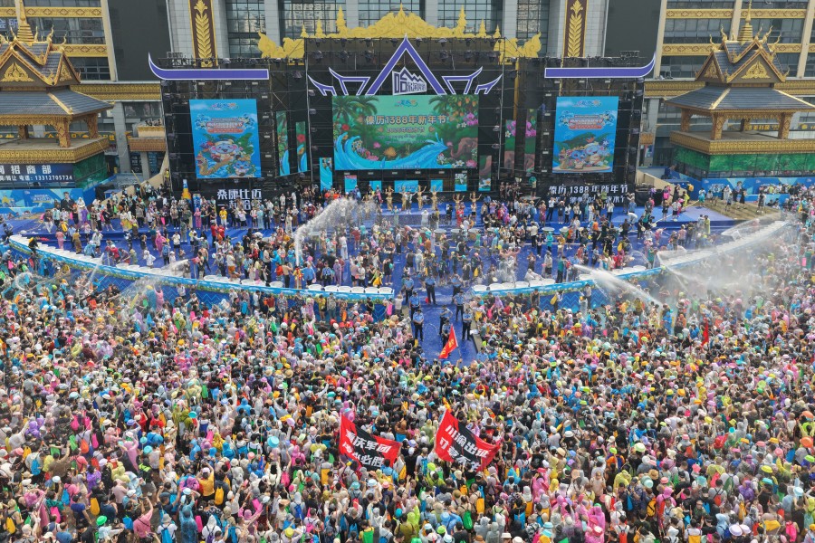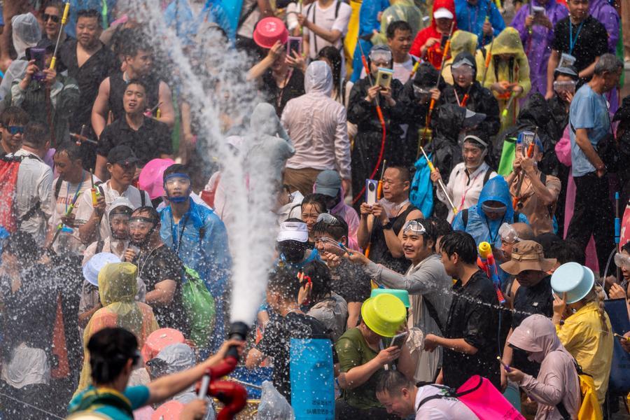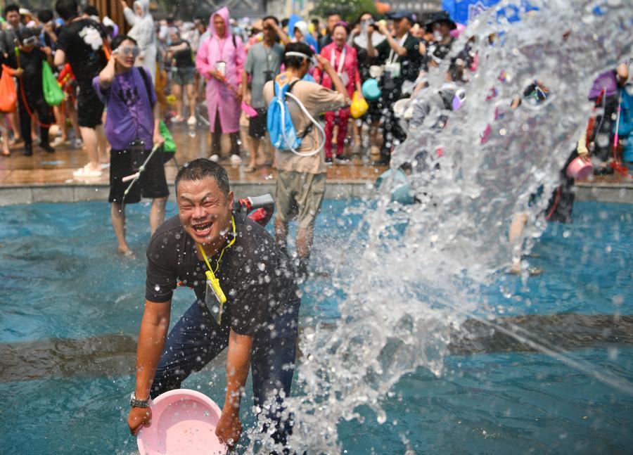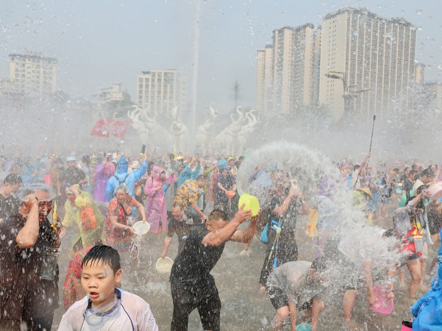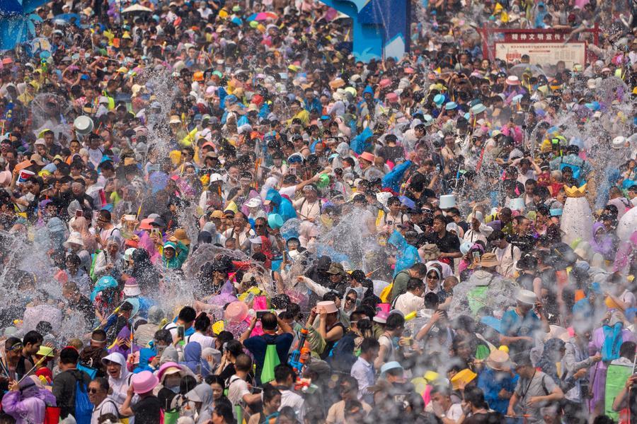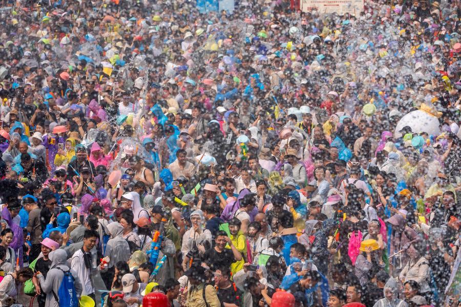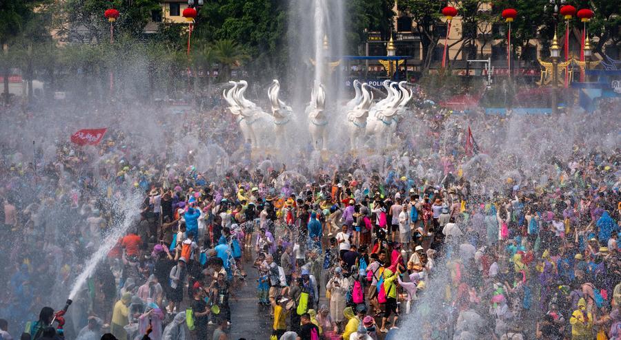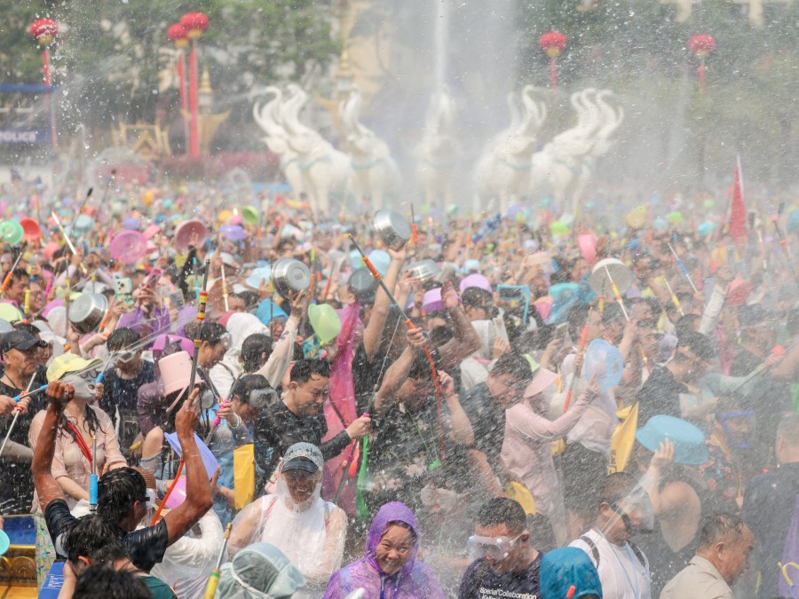 【新華社景洪4月17日】中国雲南省西双版納(シーサンパンナ)ダイ族自治州で15日、年に一度の水かけ祭りが開かれた。各民族の人々や各地からの観光客が景洪市の水かけ広場に集まり、水をかけ合いながら新年を共に祝った。