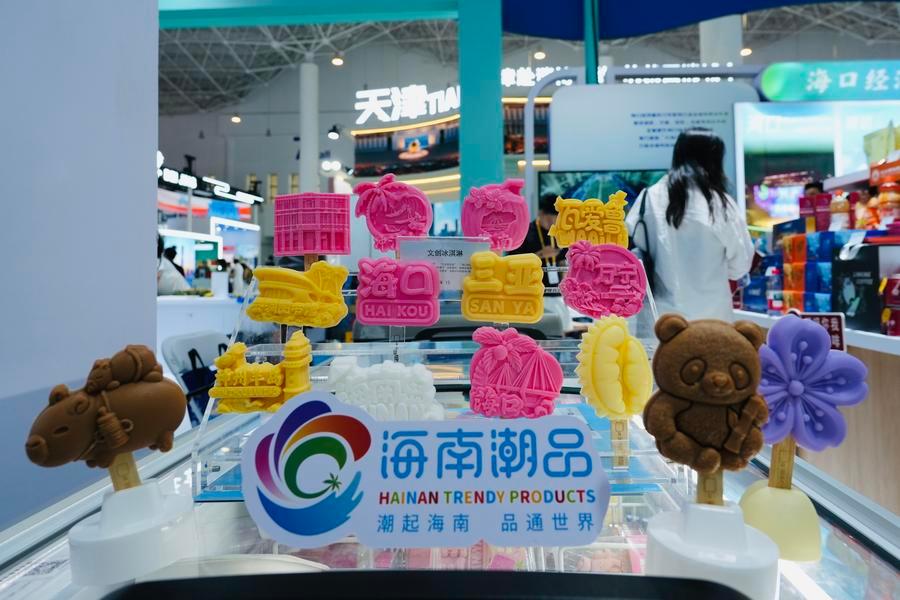 15日、海南省ブースに展示されたアイスキャンデー。(海口=新華社記者/許芸潁)