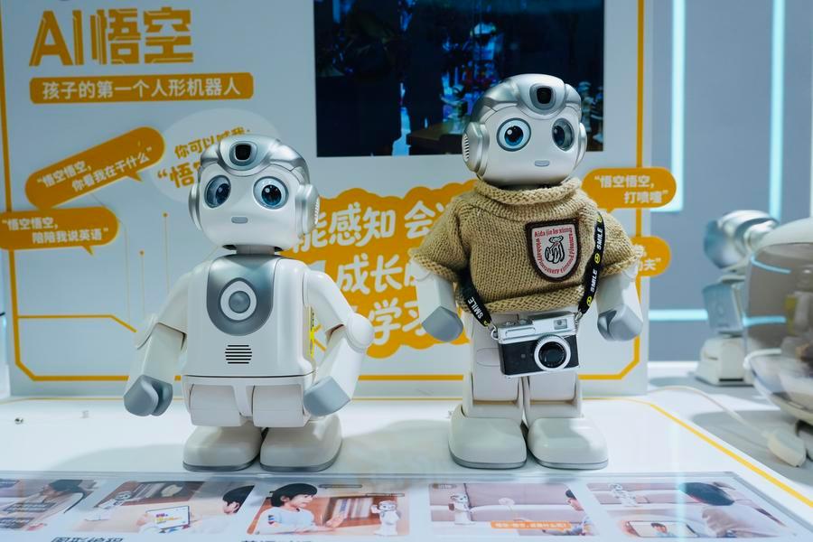15日、深圳市ブースに展示された卓上ロボット。(海口=新華社記者/許芸潁)