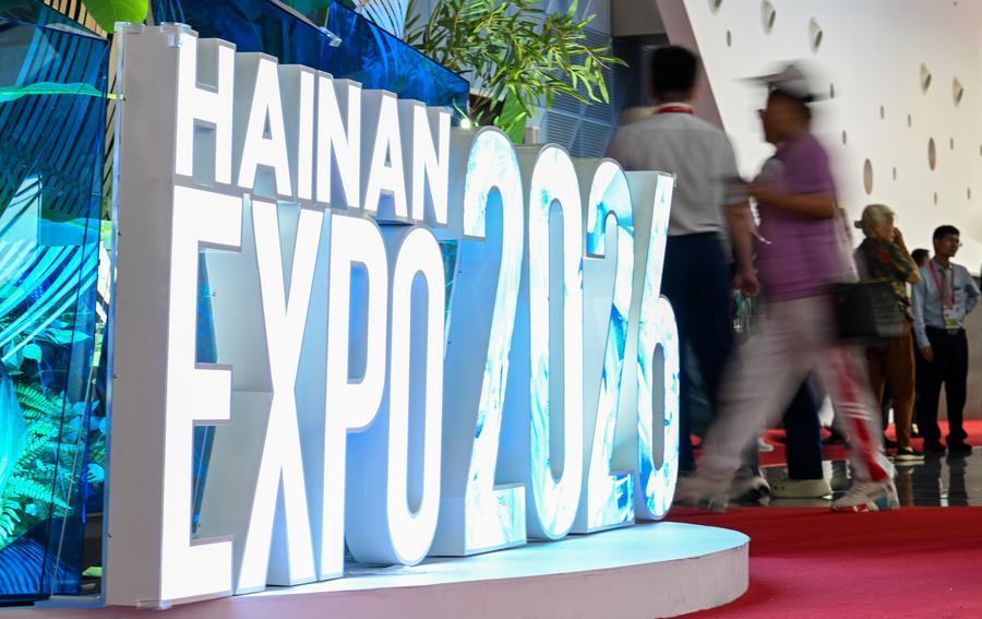 18日、消費品博のロゴ。(海口=新華社記者/楊冠宇)