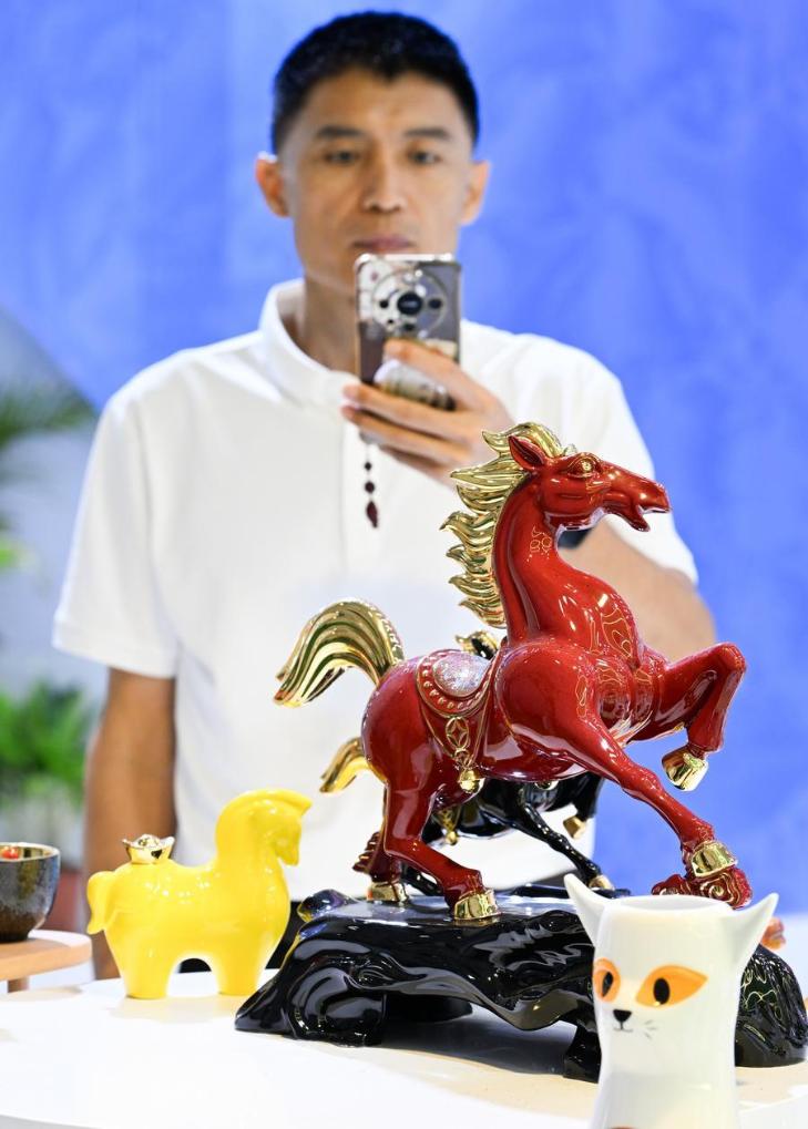 18日、消費品博で展示品を撮影する人。(海口=新華社記者/楊冠宇)